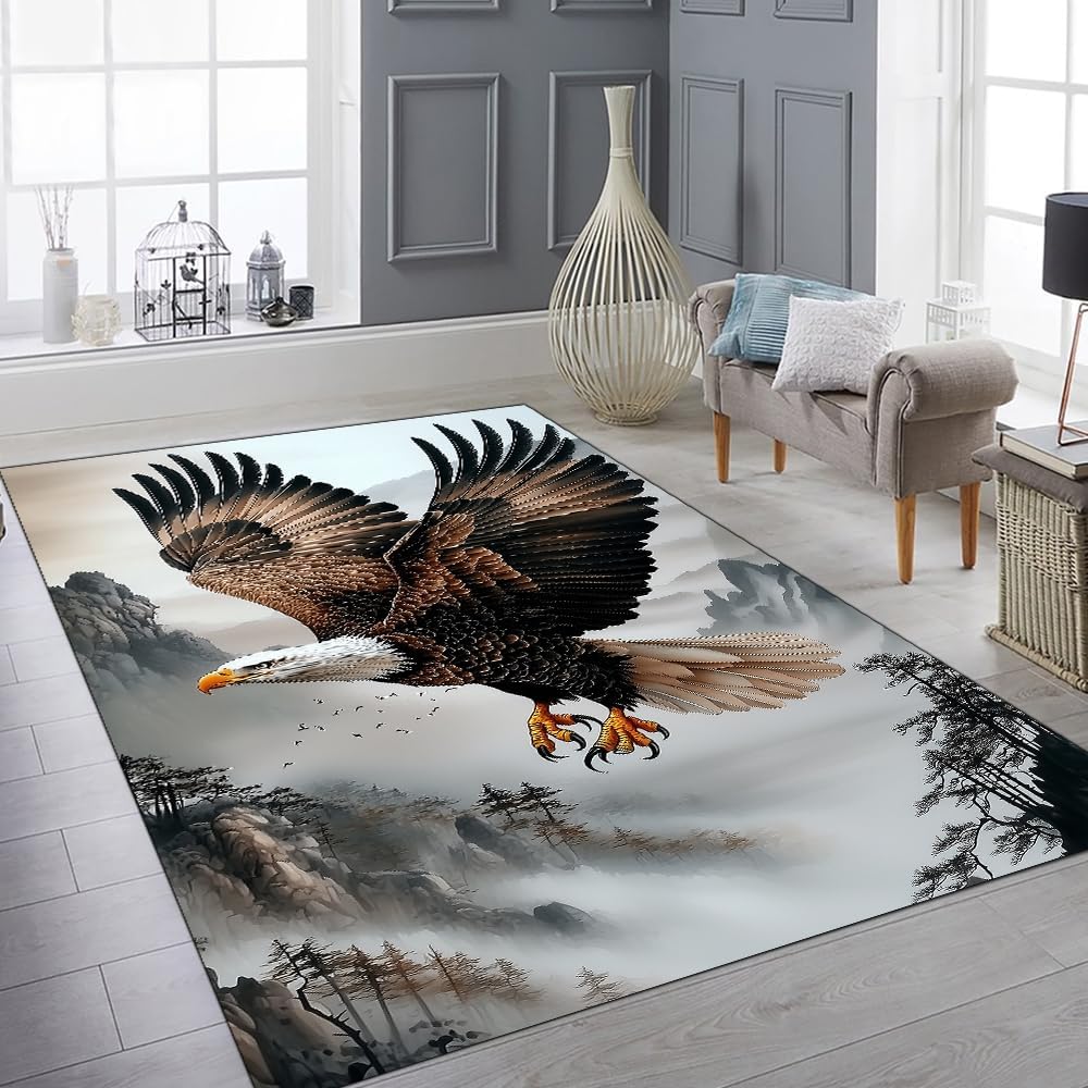 AWESOME EAGLE COLLECTION ★★★Size:X-Small: 2x3ft (60 * 90cm), Small: 3x5ft (91 * 152cm), Medium: 4x6ft (122 * 183cm), Large: 5x8ft (152 * 244cm)★★★WHY CHOOSE US:★--- Each of our rugs is made from inter sponge to create a high-density memory foam cushion which can effectively relieve foot pressure. Processed with a premium heat dye sublimation print for long-lasting color vibrancy.★--- The low-profile pile height of 4mm makes this rug look great in any room and perfect for placing under furniture.★---- Stain-resistant material makes cleaning a breeze. Use a damp cloth with mild soapy water to clean (avoid bleach) and let air dry.★---- Rugs arrive vacuumed sealed for protection during the shipping process once opened rugs may take up to 24 hours to lay flat.★---- Professional personality DIY printing design, custom personalized and easy to match, suitable for a variety of occasions, perfect for home decor, floor decor indoor, living room, bedroom, dining room, or children's playroom.★--- It's a personal gift for your lovers: Take this ultra-soft blanket for your lovers for Valentine's day, Christmas New Year, Thanksgiving, Mother's Day or Birthday, etc. ★★★ Scroll to the top Click ' Customize Now ' to select the options of 'Size', which you would like before Adding to Your Cart to begin your favorite experience.