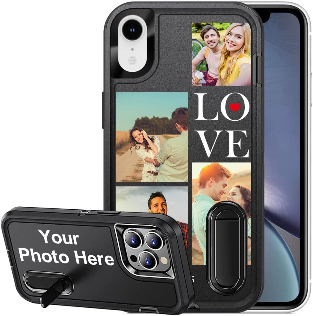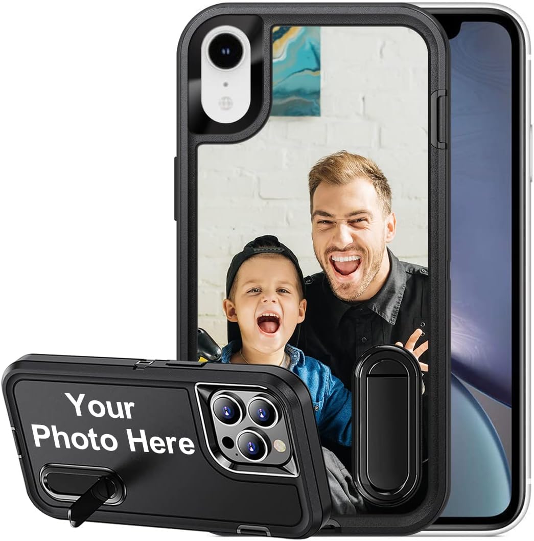 It’s simple to design your own phone case with pictures from your family photos or snapshots of your pet, you can add your own photos or text with unique style while provide protection for your phone. This also will be an special gift for your friends or family by display the most cherished memories. Specifications: Only Fit for iPhone XR Color: Black Material: PC+Rubber+Metal Package includes: 1xPhone Case 1xPacking Box How to order: 1.Check your phone model. 2.Click “Customize Now” to start. 3.Upload the picture and place the pictures to the area you want. 4.Add Text(Optional), Chose the font and text color, you ca simple drag it to the area you want it to be. 5.Add to cart and place the order. Note: 1.Please upload high quality images if you expect a high definition print. Use the original photo instead of screenshot. 2.Please avoid the portrait on the camera part.