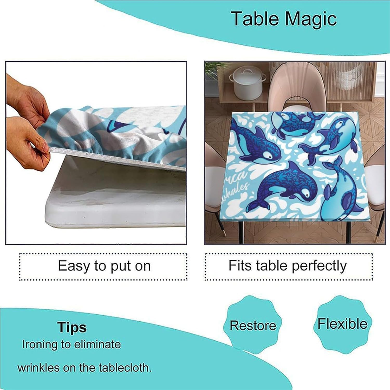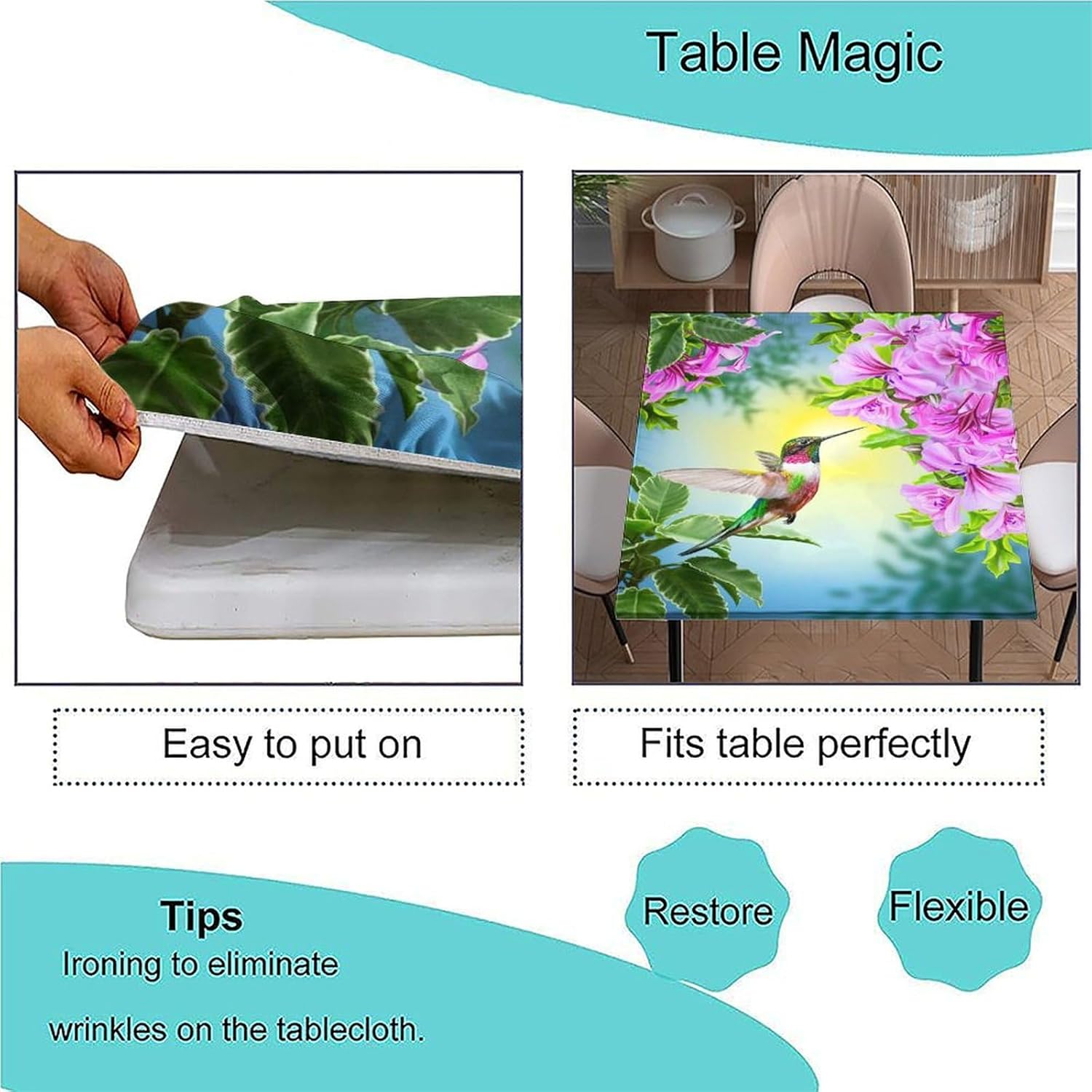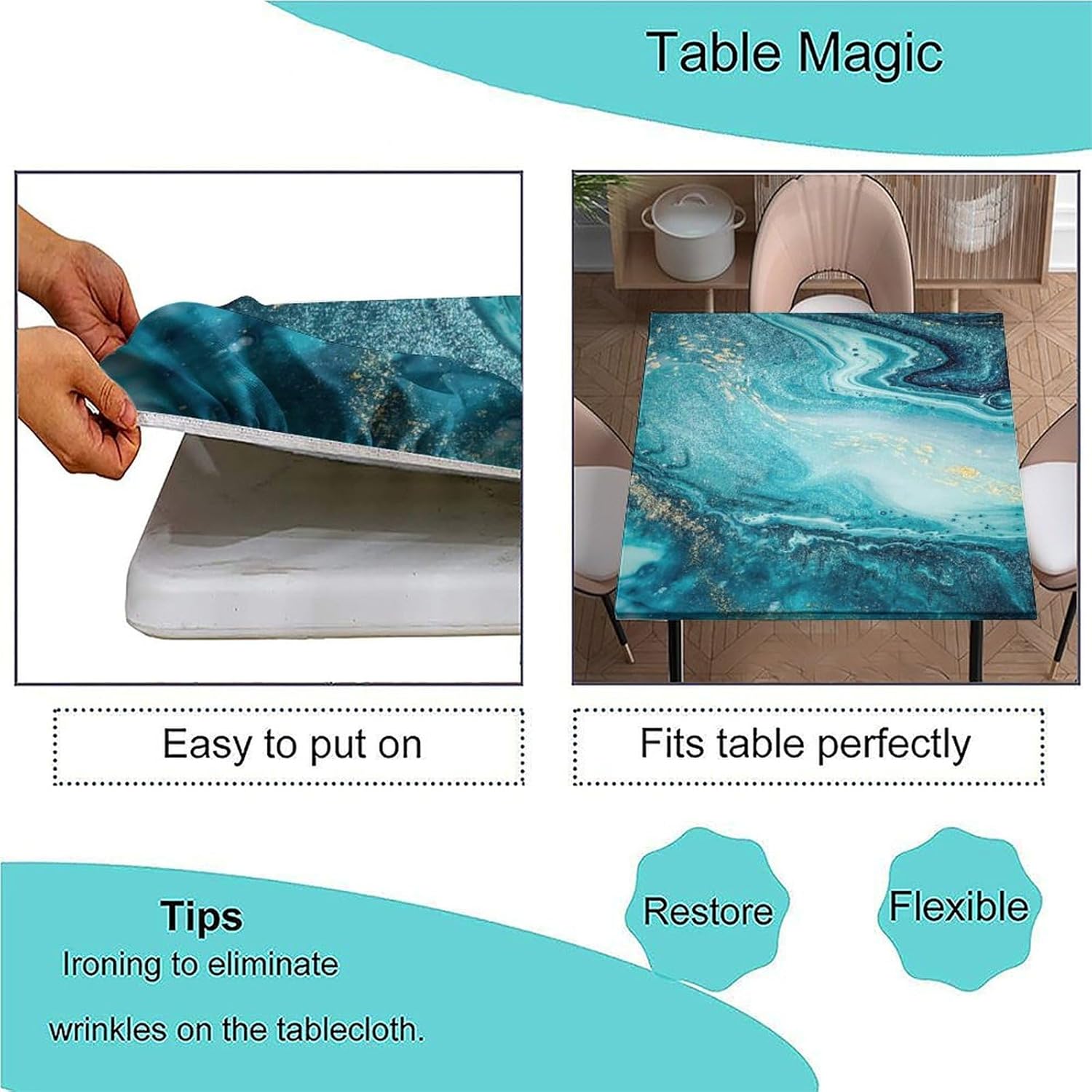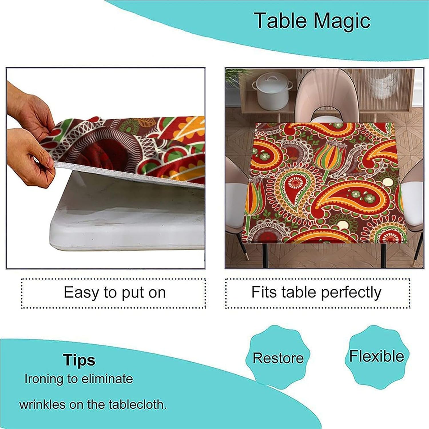 Introducing our premium Polyester Table Cloth, meticulously crafted to enhance your dining experience and protect your table in style.Premium Polyester Material: Made of high-quality polyester, our tablecloth boasts a soft and smooth texture, ensuring wrinkle resistance, scratch-proof, wear resistance, dust-proof, and stain resistance. It offers a natural, skin-friendly feel, making it ideal for all your dining needs.Multi-Size Compatibility: Designed to fit various square tables, our tablecloth comes in sizes suitable for 24" x 24", 36" x 36", 40" x 40", 42" x 42", 48" x 48", 54" x 54", and 60" x 60" square tables, providing a perfect fit for any occasion.Precision Textile: Tailored with precision, our tablecloth is ideal for both formal and casual settings. Meticulous seaming and sewing techniques ensure crisp corners and securely caught seams, making it perfect for entertaining family and friends.Thick, Elastic, Stretchable Design: Enjoy a snug fit for dining room square tables, terrace square tables, or any folding square table. The smartly incorporated elastic, stretchable corners keep our tablecloth securely in place, even in windy conditions, without the need for clips.Easy to Care For: Our tablecloth is spill-proof, stain-proof, and resistant to fading. Cleaning is a breeze - simply hand wash or gently machine wash. Avoid bleaching to maintain its quality over time.Warm Tips: Before purchasing, please measure the actual size of your table to ensure a perfect fit. Due to differences in lighting and monitor resolution, slight deviations in color may occur between the actual product and the rendered image.Upgrade your dining decor with our premium Polyester Table Cloth. Click "Add to Cart" now to experience elegance and functionality in one beautiful package.